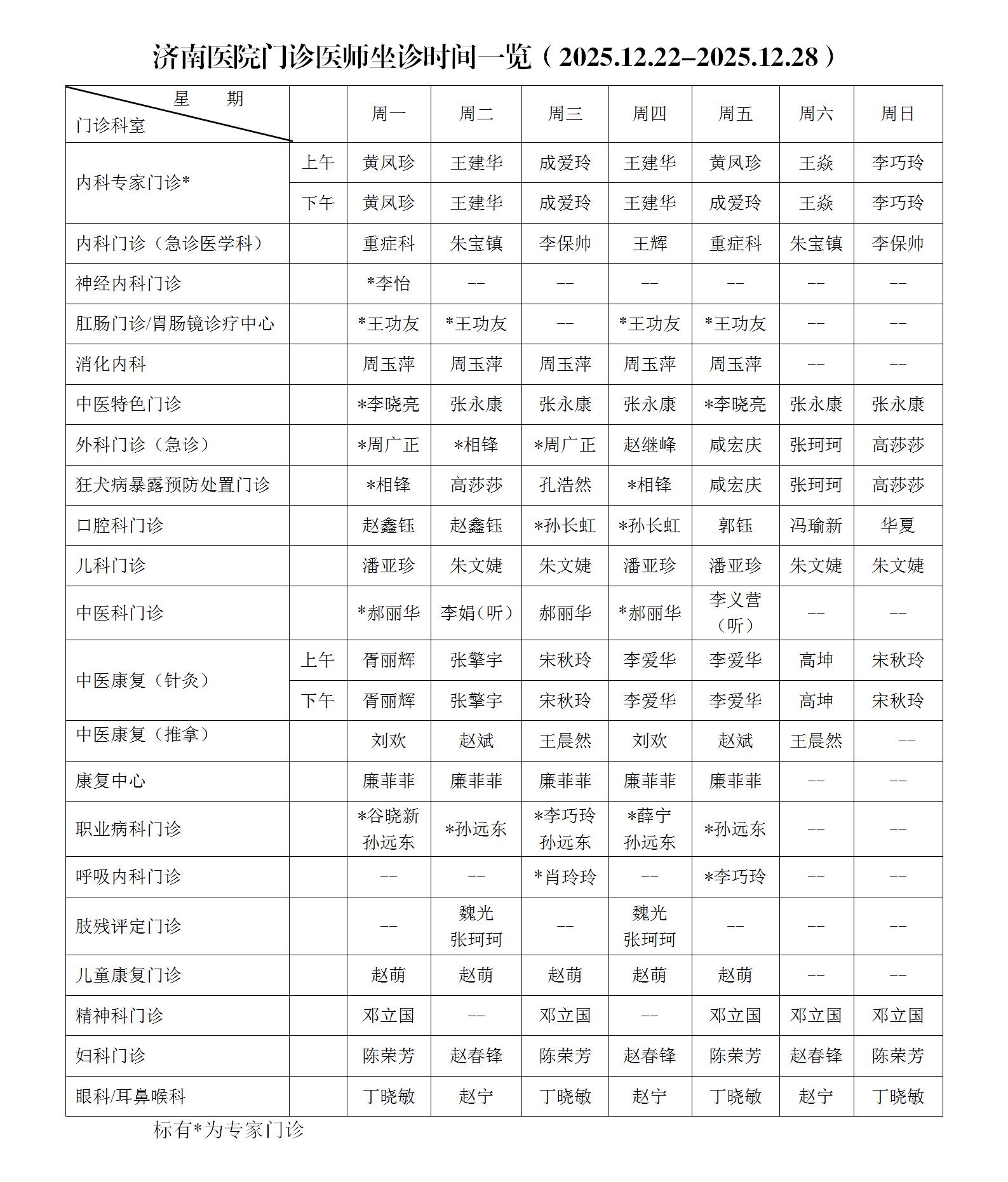 济南医院门诊医师坐诊时间一览(2025.12.22-2025.12.28)