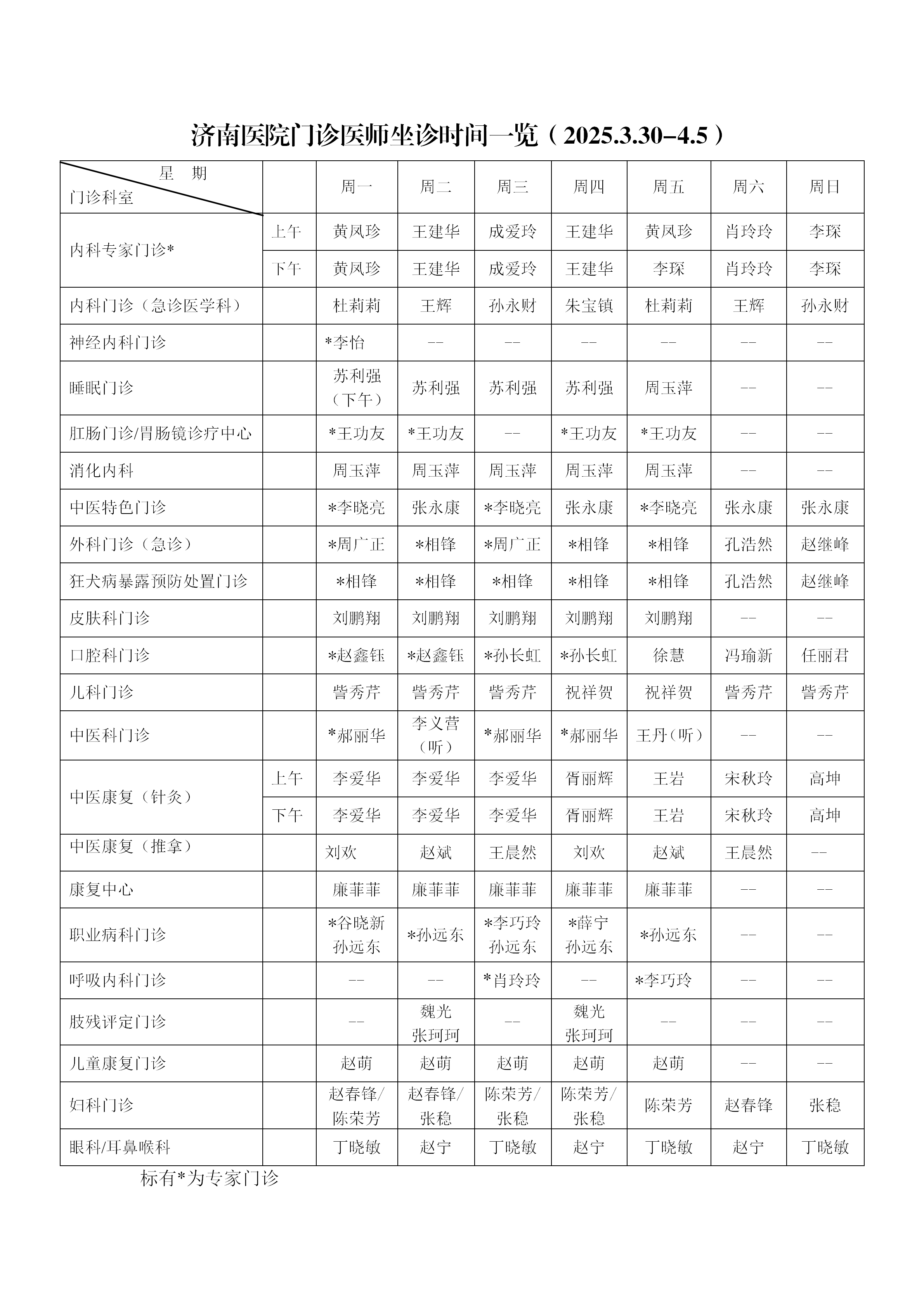 济南医院门诊医师坐诊时间一览(2025.3.30-4.5)