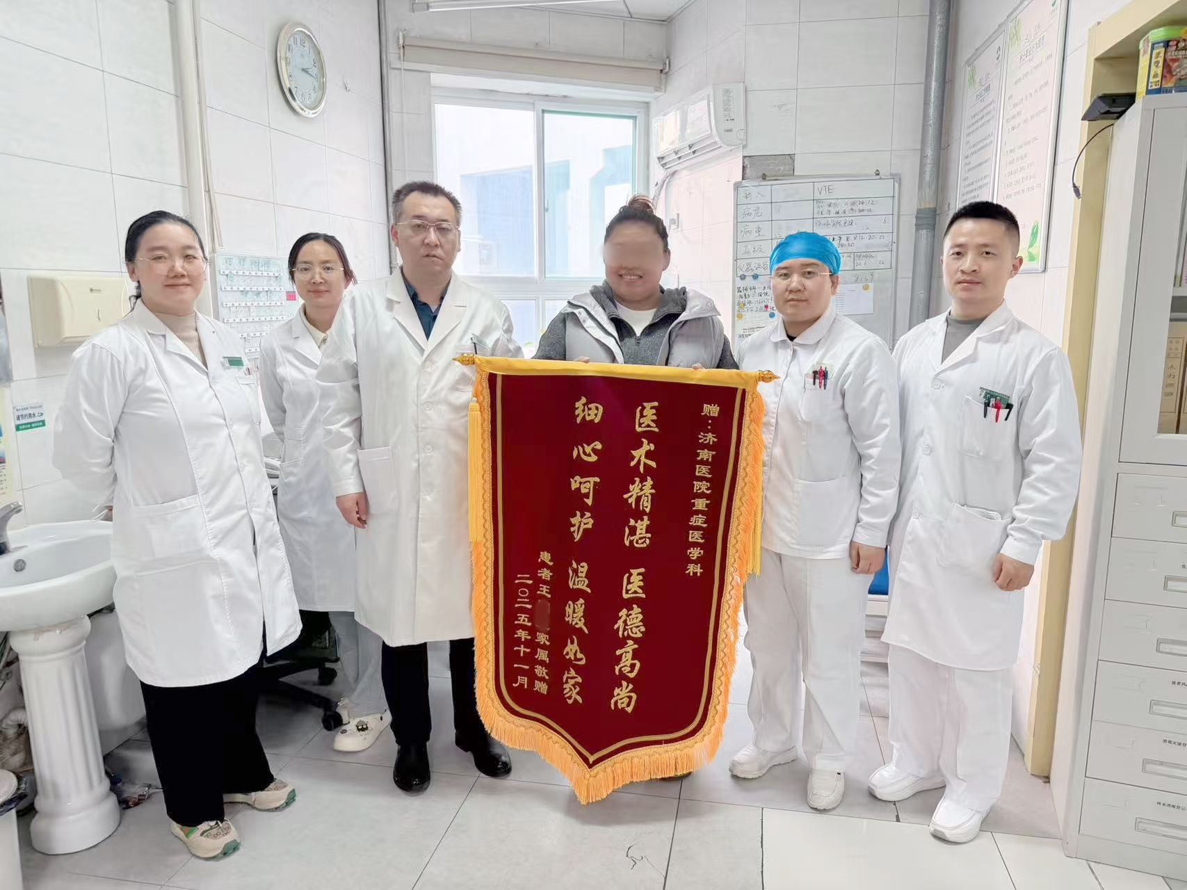 近日,济南医院重症医学科收到患者家属送来的锦旗,上面印有“医术精湛,医德高尚,细心呵护,温暖如家”的字样,饱含对医护团队的由衷感激。