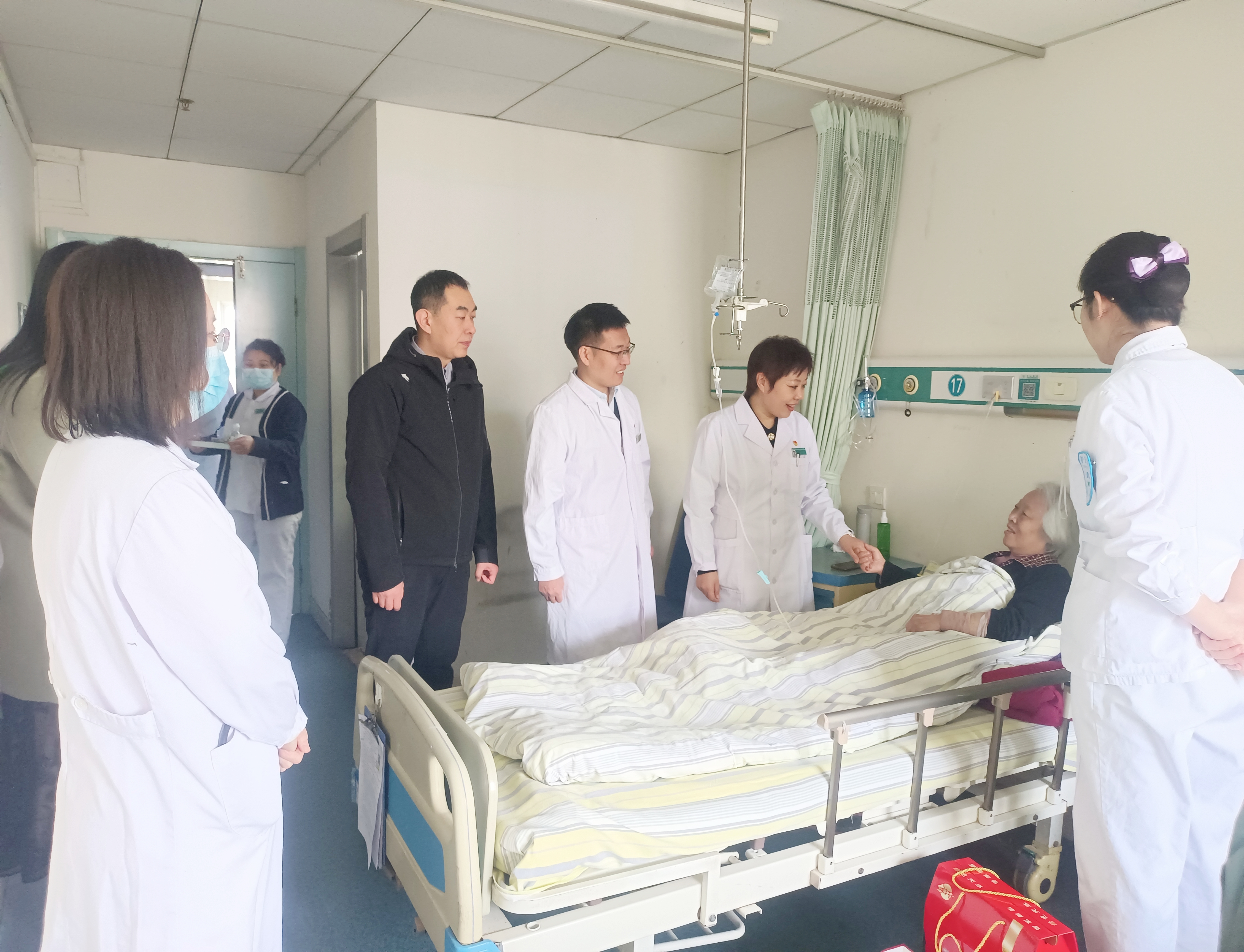 新春佳节将至,济南医院院长、党委副书记谷晓新,纪委书记武献峰,副院长张田胤带领相关职能科室工作人员慰问了在本院住院的退休职工,为她送上诚挚关怀及新春祝福,并带去了慰问品,共同为老同志送上冬日里的暖心关怀。