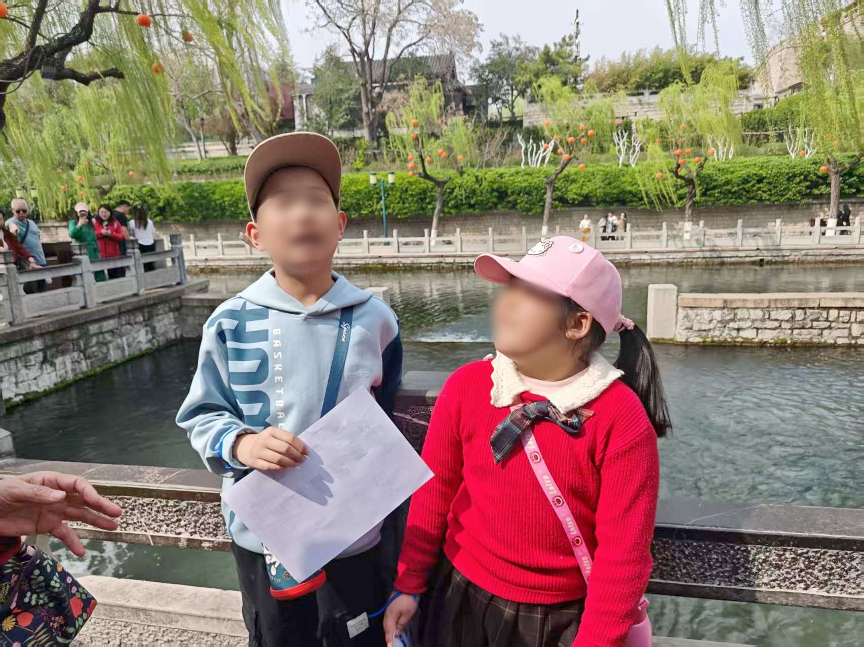 在景区游览环节,治疗师们与孩子们手牵手,共同探访黑虎泉泉群、观赏泉水喷涌,打卡特色景点。孩子们伸出小手,找到任务卡中的景色,开心地和伙伴们分享自己的发现。每经过一处,治疗师们便化身“宣传员”,向围观游客介绍孤独症群体面临的社交障碍,以及“不歧视、不排斥、多支持”的倡议。许多游客在听完讲解后,主动与孩子们挥手互动、微笑鼓励,用实际行动表达对活动的支持。