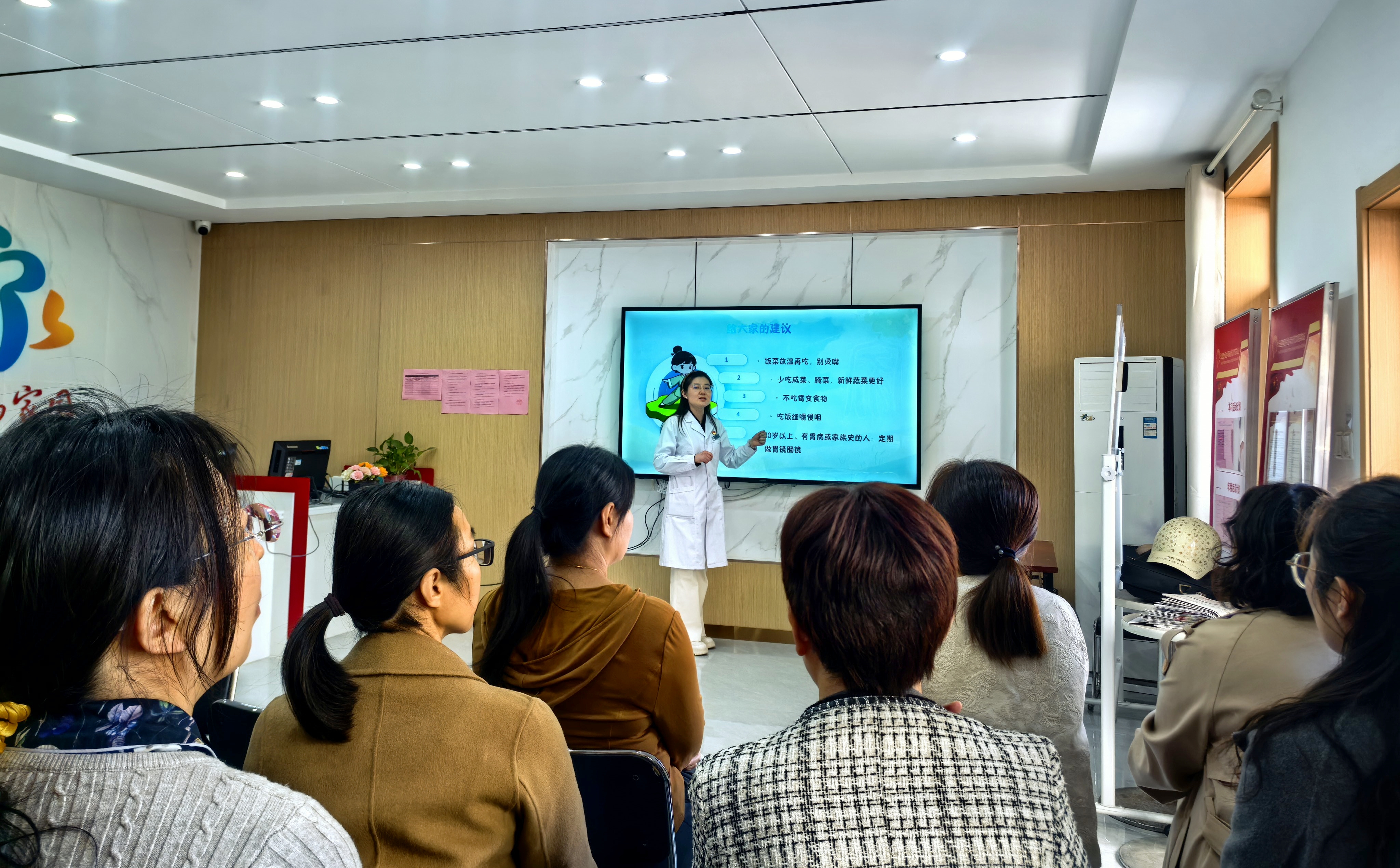 活动现场,科普专家结合国际护胃日主题宣传,以《这两个吃饭习惯,你有吗》为主题开展健康宣讲,重点提醒居民远离 “趁热吃”与“顿顿咸菜” 两大高危习惯。专家讲解道,65℃以上高温饮食易损伤食道黏膜,长期可诱发癌变;高盐腌菜含亚硝酸盐,会转化为强致癌物亚硝胺,增加食管癌、胃癌风险。同时倡导大家饭菜放温再吃、少吃腌制品、吃饭细嚼慢咽、远离霉变食物,40岁以上及有胃病、家族史人群定期做胃肠镜检查,守护消化道健康。