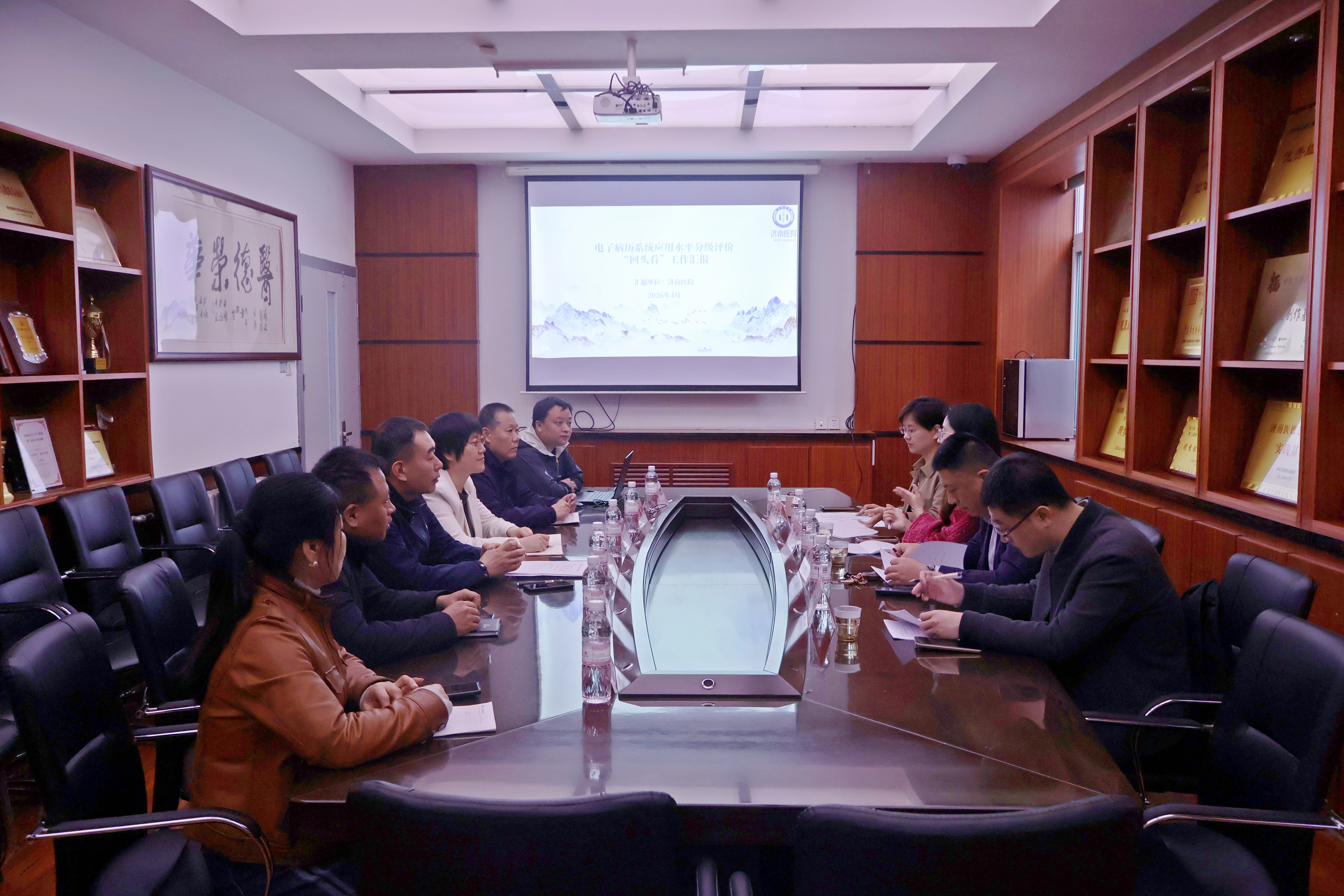 4月9日,济南市卫生健康委到济南医院开展2026年度电子病历系统应用水平分级评价“回头看”现场审核工作。济南医院副院长张田胤,副院长庞栋及相关科室负责人全程迎检,全力配合专家组完成各项审核任务。