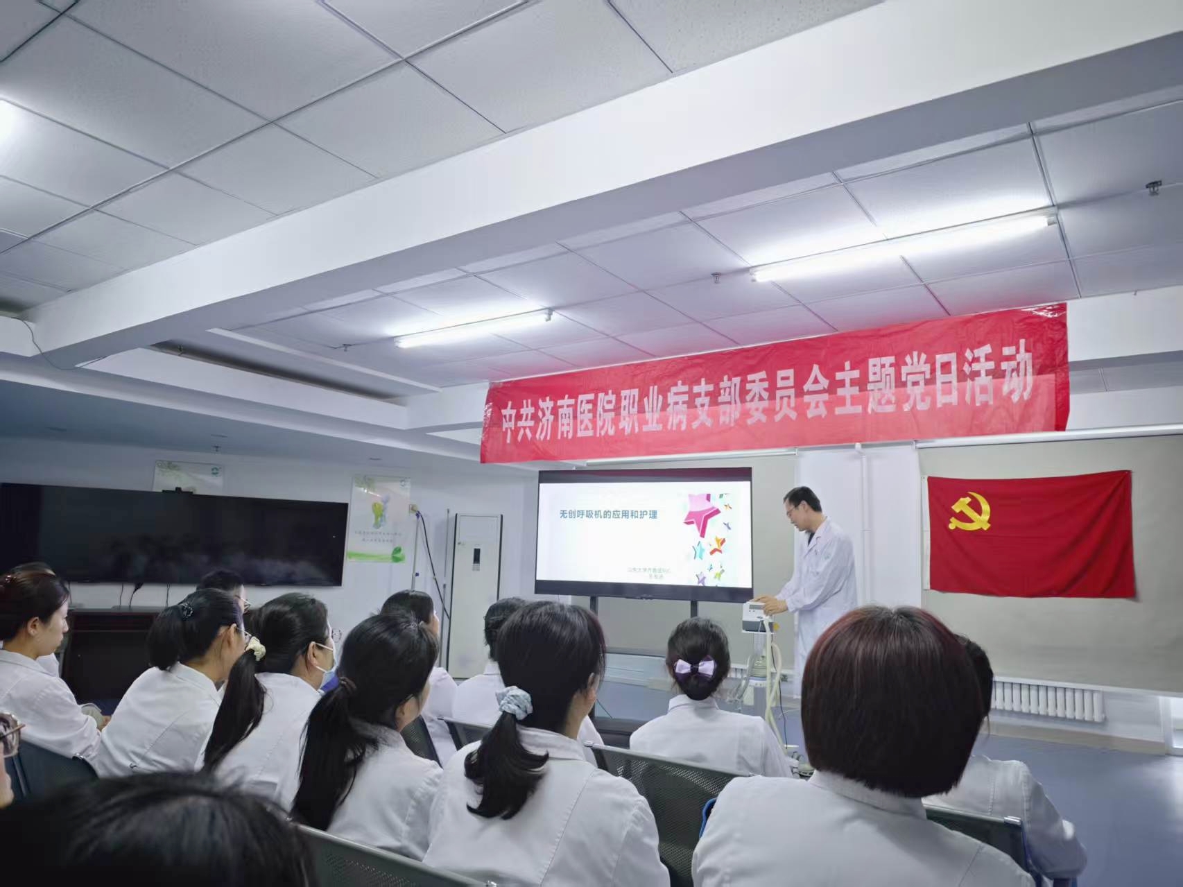 党建引领强根基,理论学习共提升,学科协作促发展,精准赋能补短板。活动中,齐鲁医院呼吸科骨干医护人员围绕呼吸动力学、有创/无创呼吸机使用、危重症患者气道护理等核心技术技能,结合临床案例进行了专题分享,通过病例分析、实操演示等方式,向济南医院职业病科医护人员传授重症救治经验。