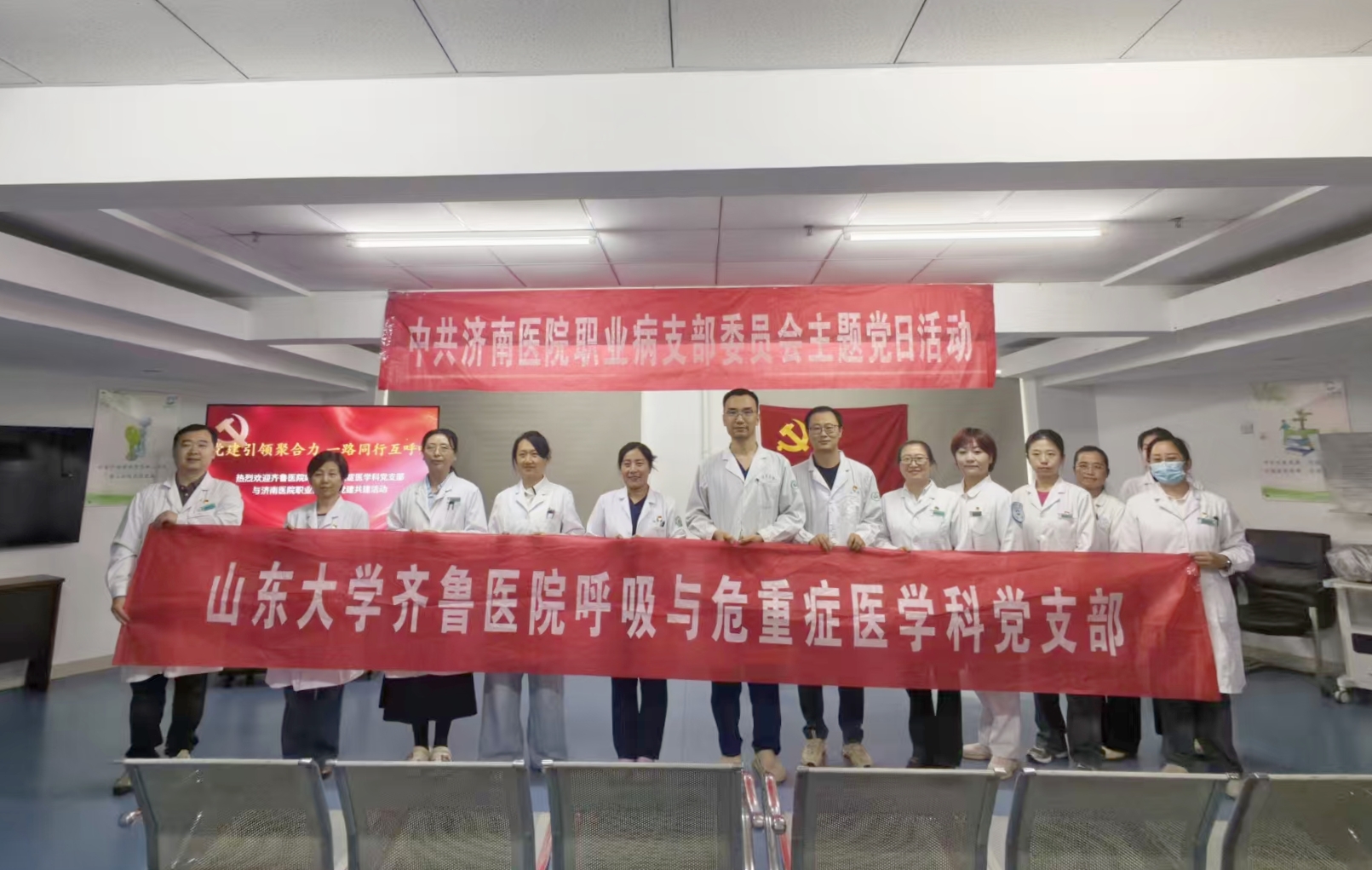 4月15日下午,济南医院职业病党支部联合山东大学齐鲁医院呼吸与危重症医学科党支部开展党建共建活动。双方党员代表、骨干医护人员,以党建促协作、以协作促提升,共同守护群众生命健康。