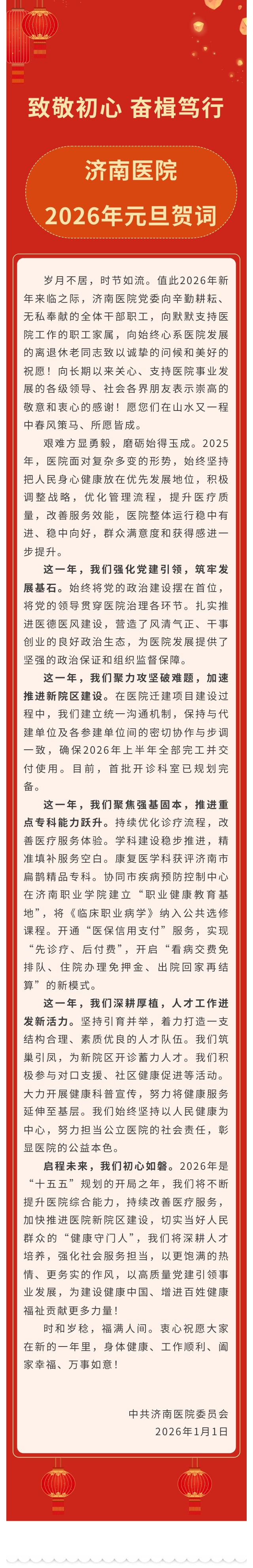 致敬初心 奋楫笃行|济南医院2026年元旦贺词